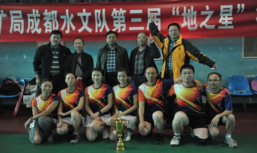 經過兩天激烈比賽,院第三屆“地之星”杯羽毛球比賽今天中午在成都市體育中心落下帷幕。在決賽中,四強隊伍激勵拼殺,最終水文公司在決賽中發(fā)揮穩(wěn)定,戰(zhàn)勝巖土公司奪得本屆羽毛球賽冠軍,巖土公司獲得亞軍,地質公司獲得季軍。