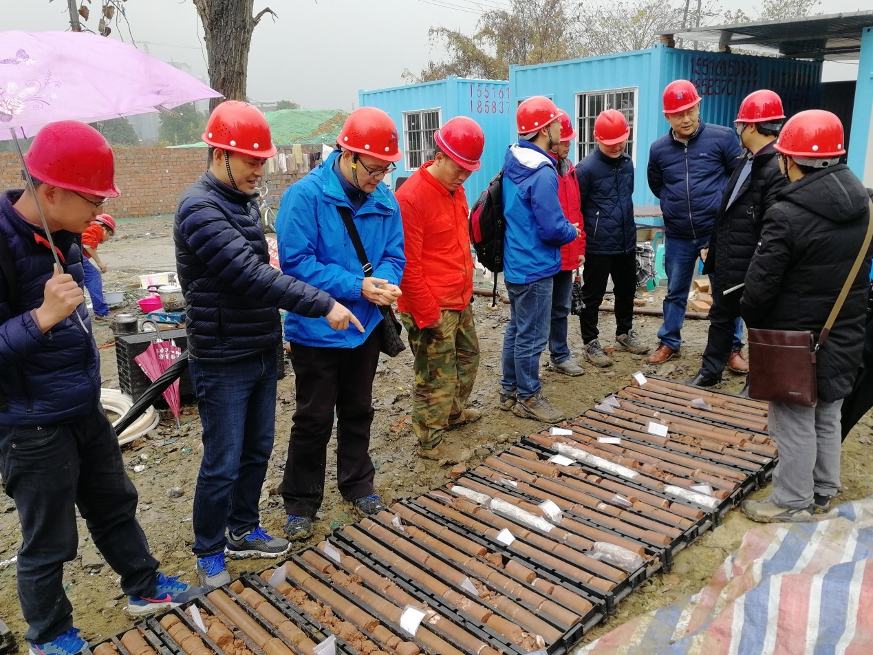 項目組現(xiàn)場負(fù)責(zé)人胡亞召首先向檢查指導(dǎo)組詳細(xì)匯報了項目前期協(xié)調(diào)、野外鉆探、物探、三維建模等工作情況,副總工程師劉宗祥一行對野外鉆探工作進行了全面質(zhì)量、安全檢查。劉宗祥一行重點檢查了施工安全教育、場地擺放、巖芯及原位測試情況,詳細(xì)詢問了現(xiàn)場鉆機工人進場安全培訓(xùn),并查看了安全教育記錄,在肯定項目組前期工作及安全文明施工的同時,也指出了項目組存在的不足:一是在城區(qū)施工由于協(xié)調(diào)問題導(dǎo)致進度較慢,應(yīng)做好溝通和調(diào)整;二是環(huán)保方面如進入場地便道、泥漿池排放、清理等應(yīng)有具體處置措施。