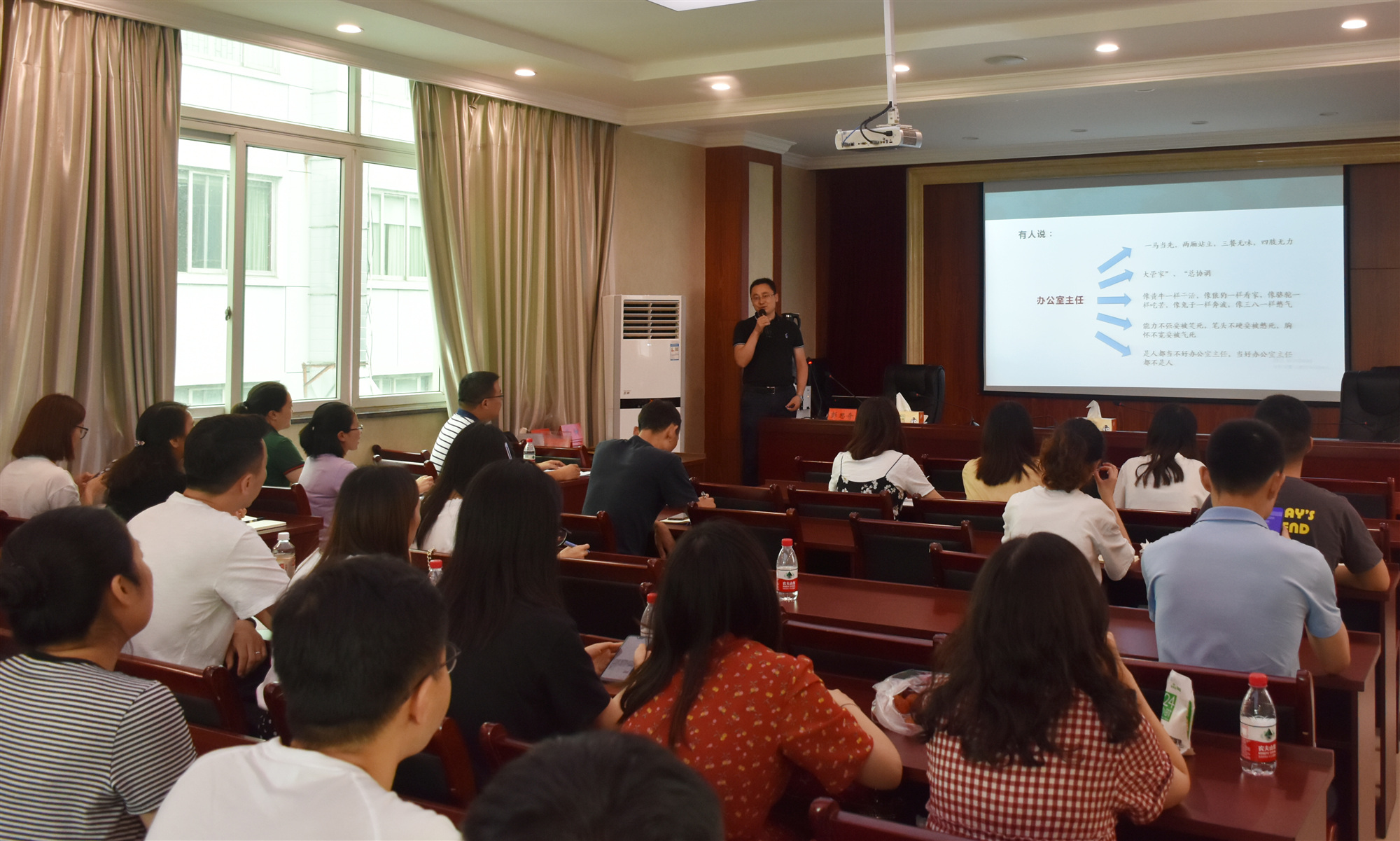 為全面提高院管理水平,切實提升職工業(yè)務素質與綜合服務能力,6月20日,院綜合管理部組織開展“2019年度實體辦公室工作人員、經營人員培訓會”,特邀職業(yè)禮儀師張?zhí)鸷退拇ㄊ⊥艘圮娙耸聞諒d辦公室主任彭思奇授課。黨委書記謝大軍親臨會場,并作動員講話,來自管理部門及二級實體的70余人參加了培訓。